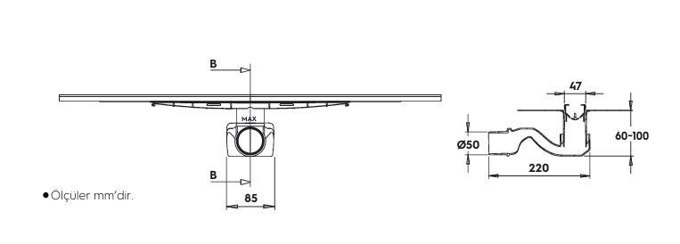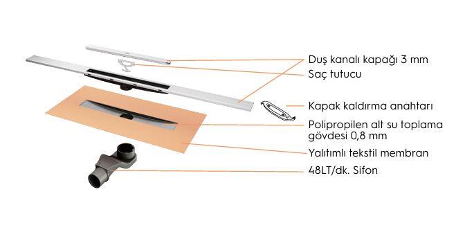 VİTRA 59980464000 DK200 300 cm Dik. Thin-cut Mat Alttan DUŞ KANALI